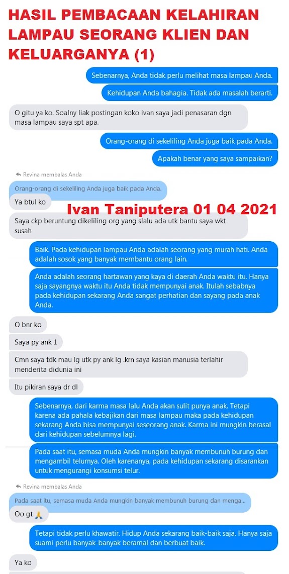 Pada kesempatan kali ini, kita akan memaparkan kembali hasil pembacaan kelahiran lampau seorang kklien dan keluarganya.